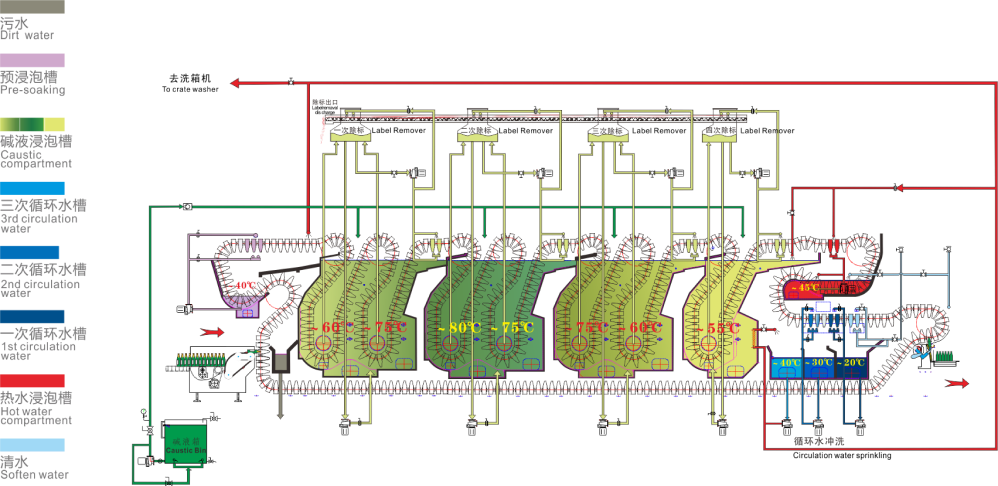 4、Heat exchange between 1st and last caustic compartment, bottle washer and pasteurizer etc.